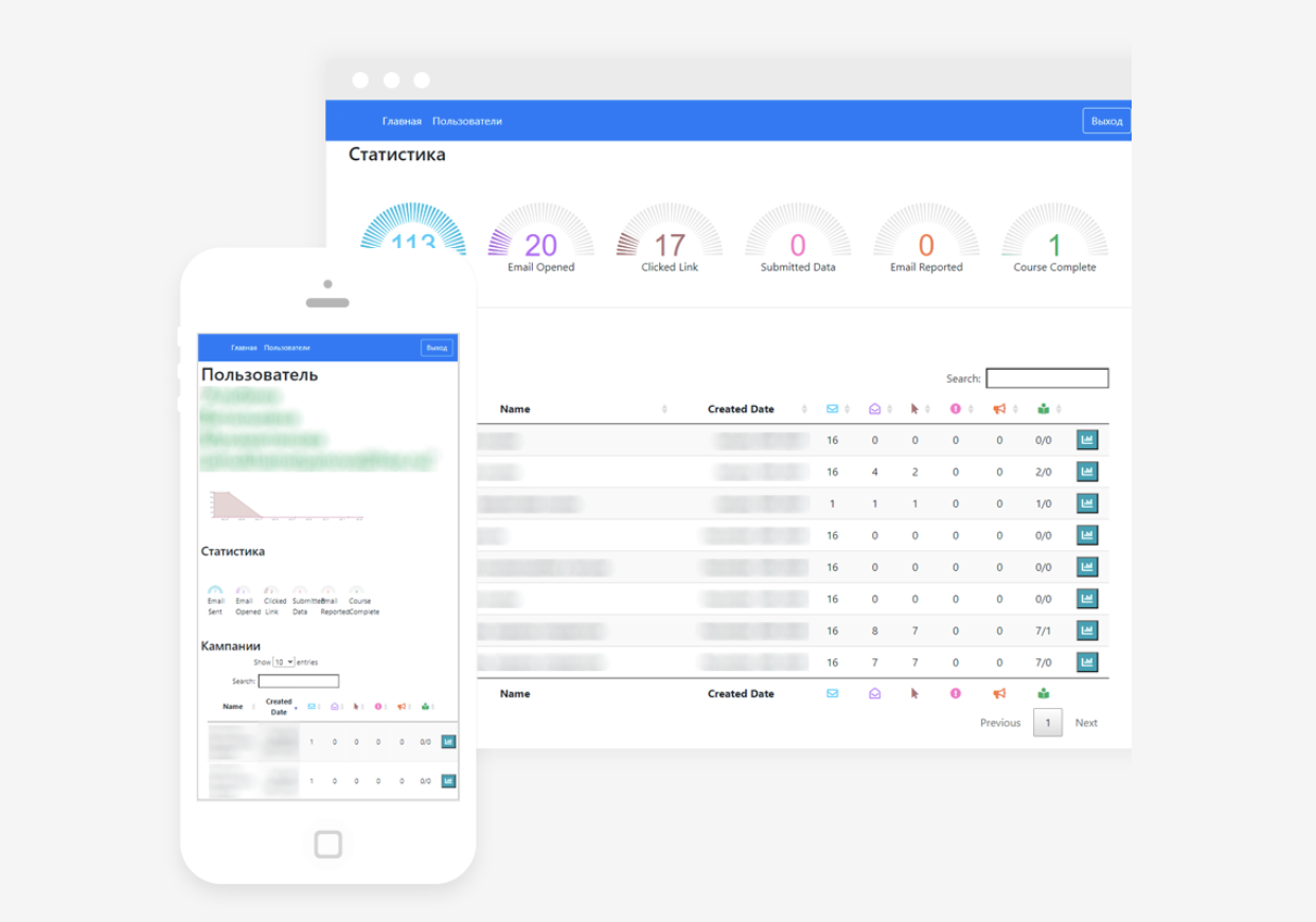 Аналитика по отделам — ИБ-менеджер видит, кто уязвим, и адресно усиливает обучение.