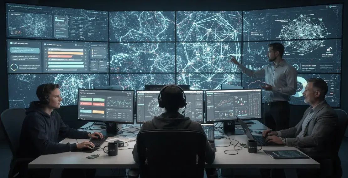 Security Operations Center (SOC, или Центр мониторинга безопасности) — это подразделение или внешний сервис, отвечающий за непрерывный мониторинг ИТ-инфраструктуры организации с целью обнаружения, анализа и нейтрализации киберугроз в реальном времени. SOC объединяет людей, процессы и технологии: аналитики работают с потоками данных из тысяч источников — серверов, сетевых устройств, конечных точек, облачных сервисов, — чтобы первыми увидеть аномалию до того, как она превратится в инцидент. Именно SOC становится «нервным центром» кибербезопасности крупного бизнеса: без него организация работает вслепую, реагируя на атаки постфактум.
